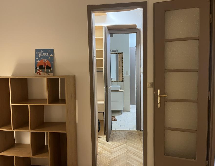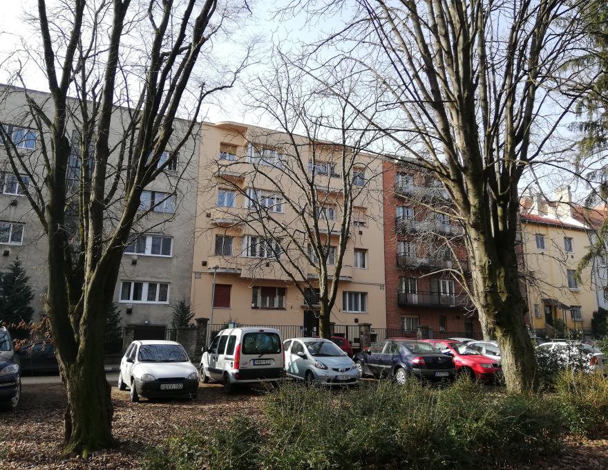 A lakás egy kulturált lakóközösségű Bauhaus stílusú épület félemeletén helyezkedik el, megközelítése gyors és egyszerű.