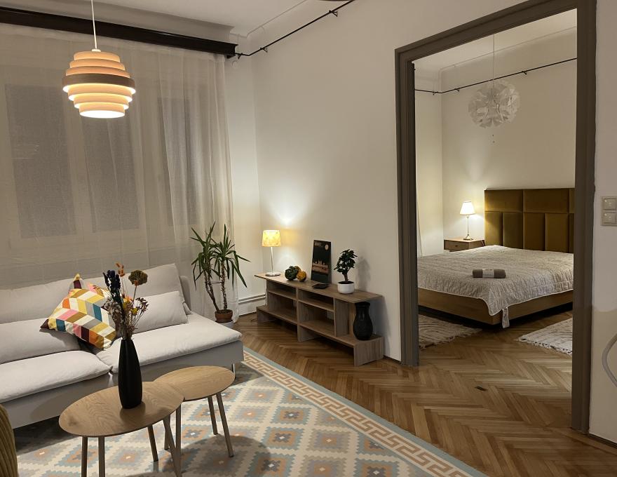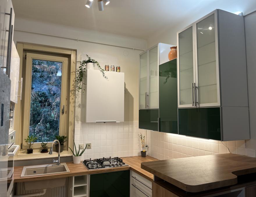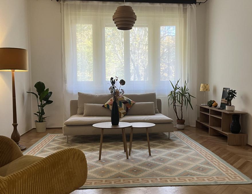 Kiadó az XII. kerületben, Buda központjában, csendes zsákutcában a Maros utcában egy nappali + 2 hálószobás, 77 m2-es, a városmajori parkra néző, frissen felújított és berendezett magasföldszinti lakás.