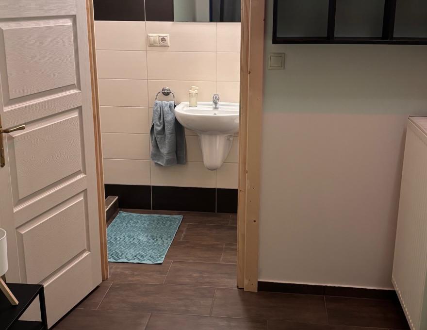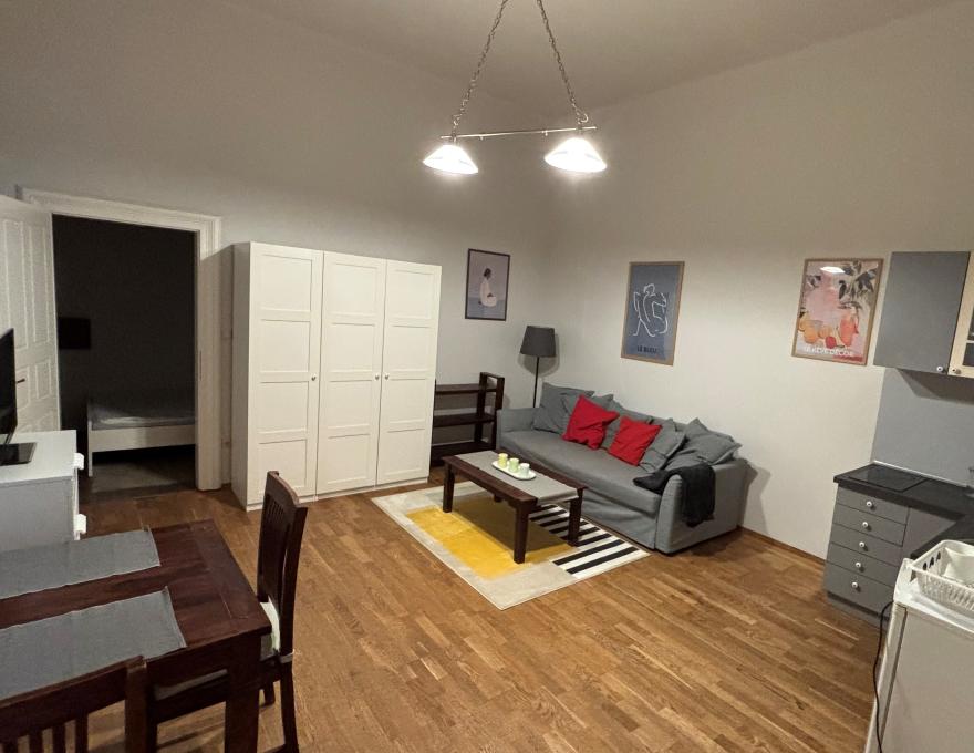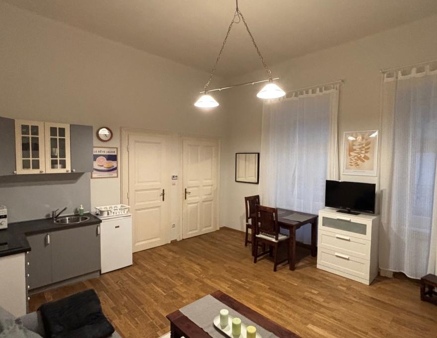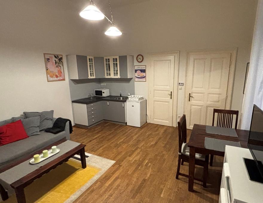 FOR RENT: A 43 sqm PET-FRIENDLY apartment with a living room, bedroom, and 2 bathrooms on the 1st floor (no elevator) on Nagy Ignác Street in District 5.