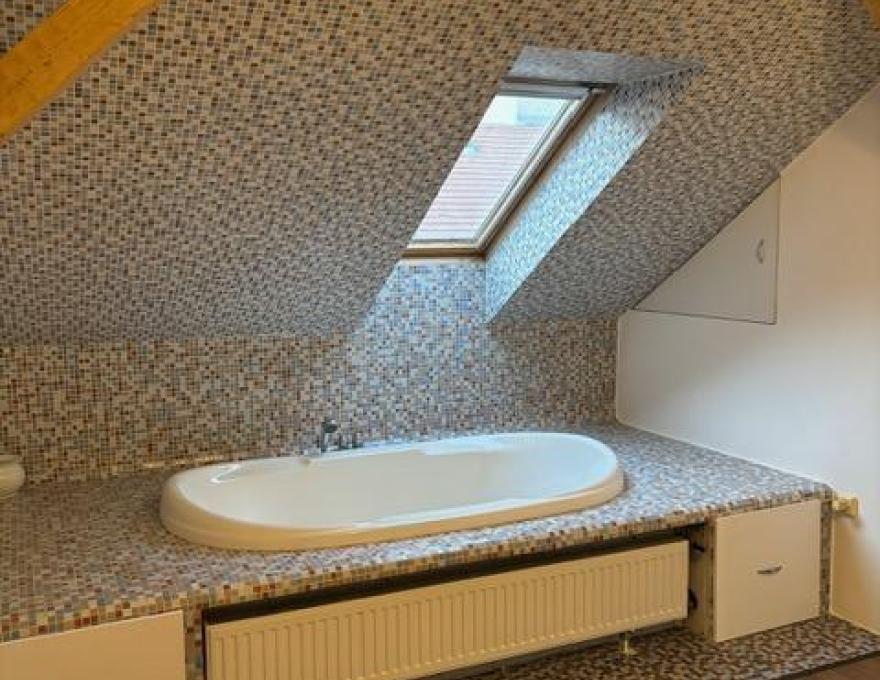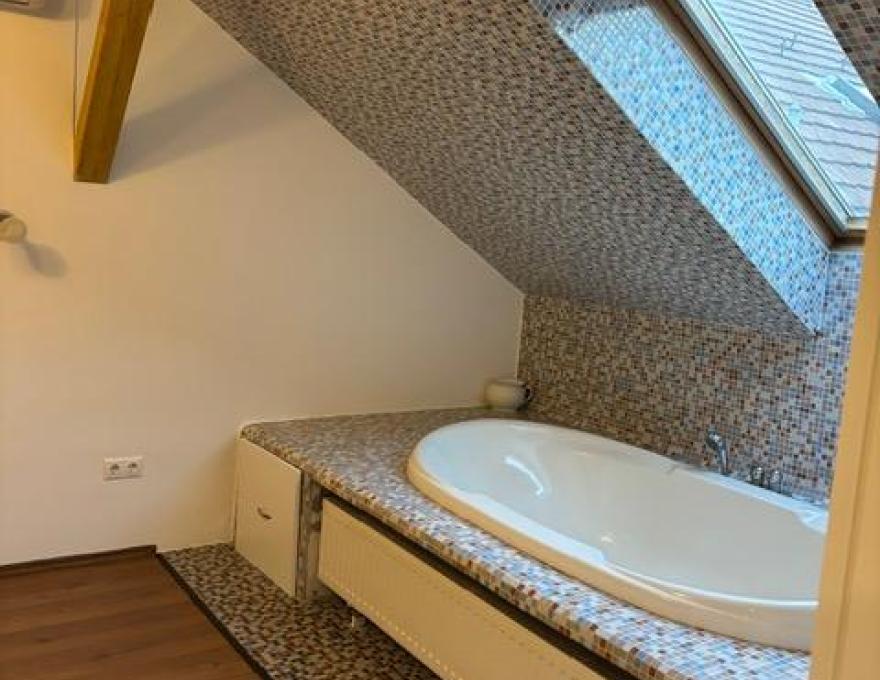 KÜLÖNLEGESSÉGE a hálószobában elhelyezkedő KÁD, mely a tetőtér nem hasznos terét tölti ki. Illetve az EGYEDI ELOSZTÁS, mely lehetővé teszi, hogy 3 teljes és 1 félszoba is használható legyen a kamra, külön WC és a fürdőszoba mellett.