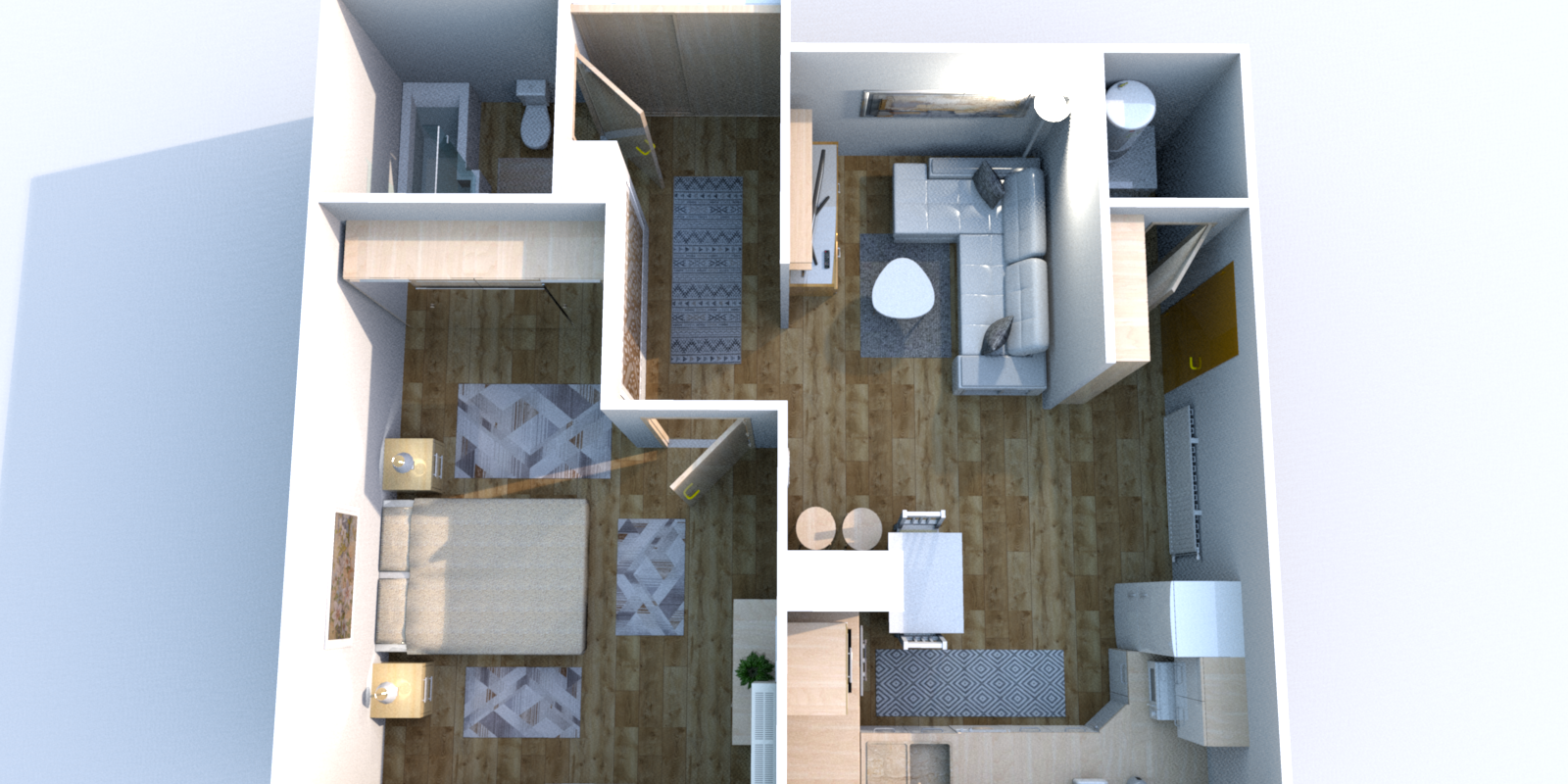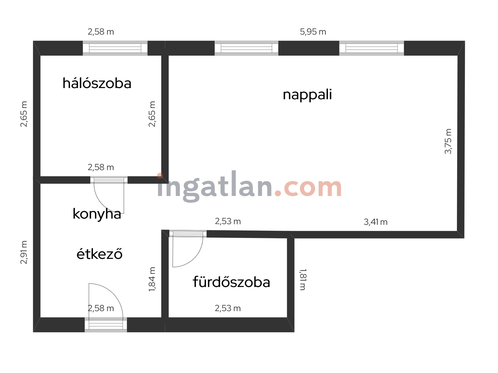 Nappali + 2 hálószoba